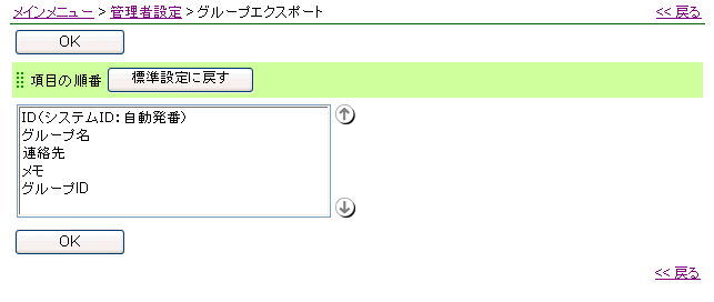 2.項目の順番を設定します。 [項目の順番]欄を、[項目の順番]欄で、エクスポートする項目の順番を設定します。 項目を選択し、↑↓ボタンをクリックすると順番が変更できます。