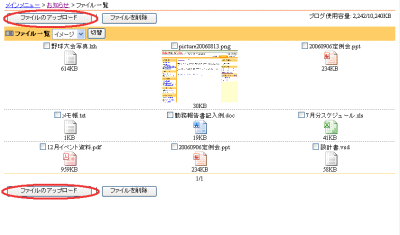 アップロードしたファイルの一覧(イメージ)を表示、ファイルを削除する機能です。