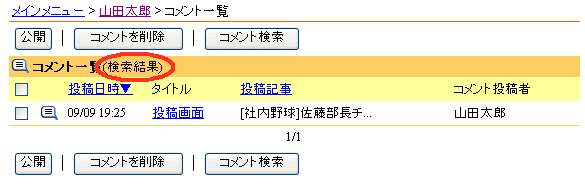 4.検索条件に一致したコメントがある場合、[コメント一覧]の隣に[(検索結果)]と表示されます。