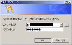 12.タスクを実行するユーザー アカウントを選択、パスワードを入力し[OK]をクリックして下さい。