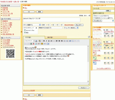2.[編集]ボタンをクリックすると[記事の編集]画面が表示されます。