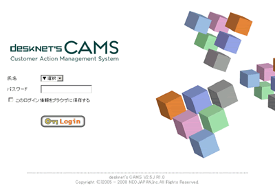 次にデータベースに「cams」ユーザーとして接続するための情報を入力します。 初回のCAMSインストール後から設定等、何も変更されていなければ、「パスワード」欄には、「dncamsus」または「cams」を入力してください。(初回インストール時のバージョンにより異なります)
