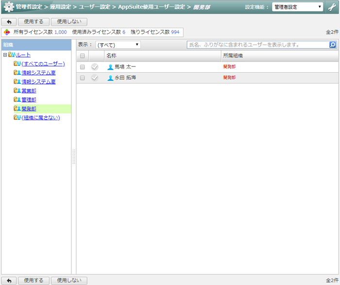 [管理者設定>グループ管理>グループ一覧]を開き、移行対象のグループに3桁単位の組織コードが設定されていることを確認してください。