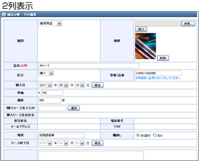 データ登録用の単票を見やすく・入力しやすくレイアウトできます。レイアウトはドラッグ&ドロップで簡単に変更できます。データの閲覧画面や編集画面では1列から3列までのレイアウトが可能です。