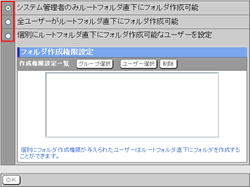 【文書管理設定】欄の[フォルダ作成権限設定]リンクを押します。