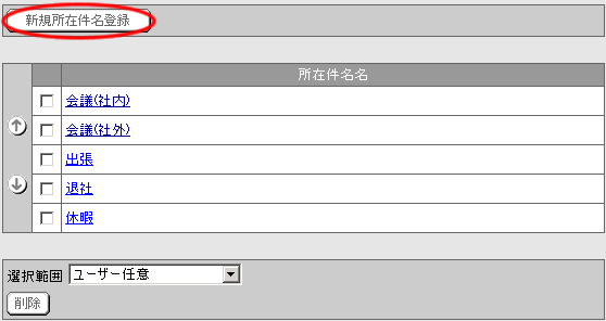 【伝言・所在設定】欄の[所在件名設定]リンクを押します。