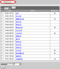 祝日情報を入力します。