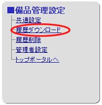 【備品管理設定】欄の[履歴ダウンロード]リンクを押します。