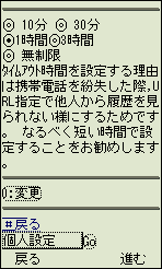 ※タイムアウト時間を設定する理由は携帯電話を紛失した際,URL指定で他人から履歴を見られない様にするためです。なるべく短い時間で設定することをお勧めします。