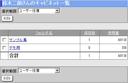 キャビネットを確認したいユーザーのいるグループを選択して下さい。