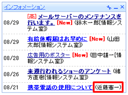 トップポータルでインフォメーションを表示する際には、掲示開始日順に表示します。