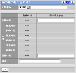必要な項目の修正を行ってください。 ※一度入力された時刻をクリアすることはできません。 表示する対象日は ・・・前日を表示 ・・・今日を表示 ・・・翌日を表示 を押して変更することができます。