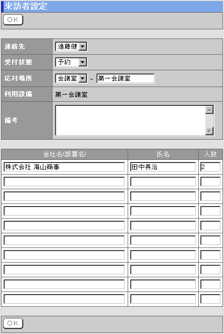 を押すと、来訪者情報の変更は完了です。