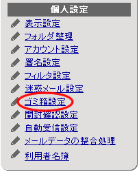 サブウィンドウの【個人設定】欄にある[ゴミ箱設定]リンクを押します。