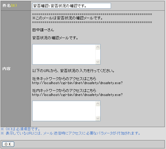 【安否確認設定】欄の[配信メール内容の設定]リンクを押します。