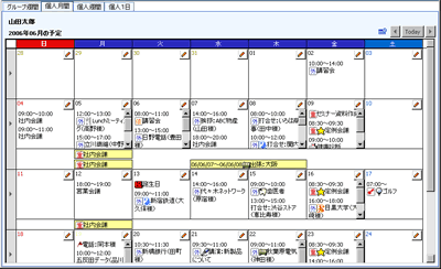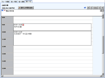 表示するスケジュールは「グループ週間」「個人月間」「個人週間」「個人1日」のタブから選択して下さい。