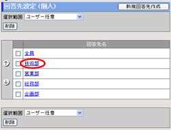 回答先一覧画面で変更したい”回答先名”リンクを押します。