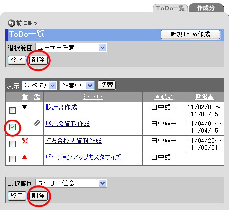2.ToDo一覧から削除する手順