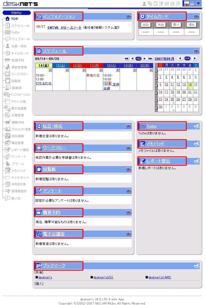 旧desknet'sエンタープライズ版の販売は2015年12月末を持って終了しました。 新しいデスクネッツのグループウェア>