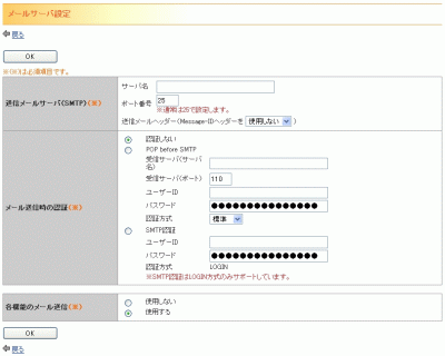 1.[初期設定]-[メールサーバ設定]をクリックすると、メールサーバ設定画面が表示されます。