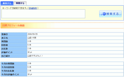 | 質問数 | ユーザーが今までに質問した総数が表示されます。 |