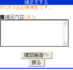 3.[確認画面へ]ボタンをクリックすると補足内容の確認画面が表示されます。