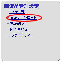 【備品管理設定】欄の[履歴ダウンロード]リンクを押します。