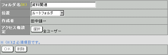 ※[削除]ボタンを押すと、フォルダを削除することができます。