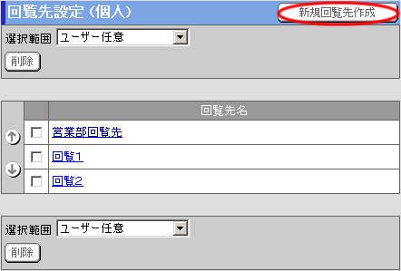 一覧に表示されている回覧先の全てが選択範囲となります。