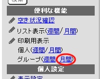 サブウィンドウの【便利な機能】-[印刷用表示]の[グループ(週間/個人)]の"月間"リンクを押します。