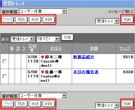 HOMEサポートウェブメール>メールの受信、受信メールの整理