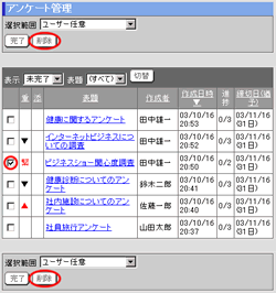 アンケートの管理(削除・完了等)を行います。