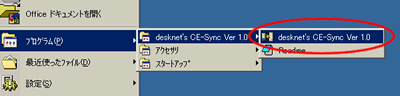 インストールが完了したら、デスクトップに作成されたショートカット、または「プログラムメニュー」内の”desknet's CE-Sync”より、desknet's CE-Syncを起動してください。