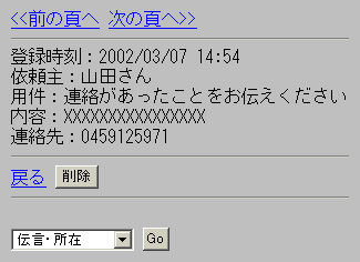 伝言が複数存在する場合、画面上部に”次の頁へ”が表示され、次の伝言が参照出来ます。