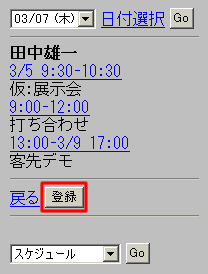 「個人予定/日」「個人予定/週」「グループ予定/日」「グループ予定/週」画面からも登録画面を表示出来ます。