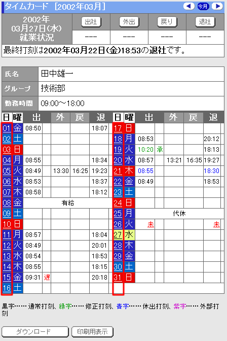 | 管理者設定で打刻の修正が許可されていない場合、修正画面は表示されず、修正を行うことはできません。 |