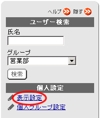 サブウィンドウの【個人設定】欄にある[表示設定]リンクを押します。