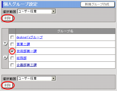 個人グループ一覧から削除したい個人グループを選択してください。