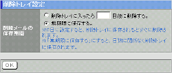 削除後、数日したら削除してしまいたい場合、「削除トレイに入ったら"日数"日後に削除する。」を選択し、保存しておきたい日数を入力してください。