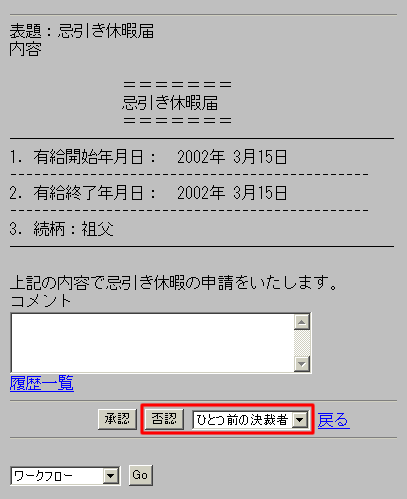 HOMEサポートPDA対応版ワークフロー>申請書の否認