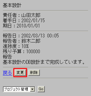 「タスク情報」画面の下部にある進捗報告一覧から”報告日”を押します。