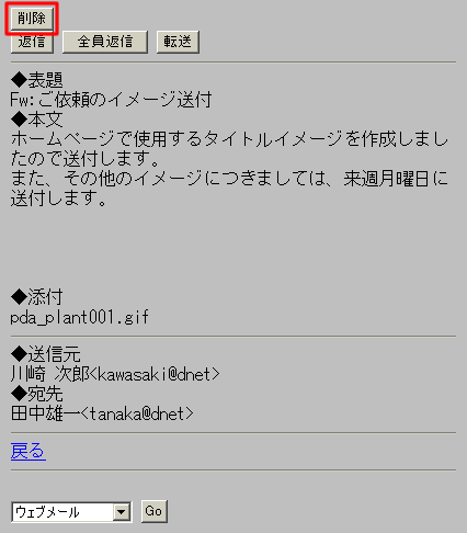HOMEサポートPDA対応版ウェブメール>メールの削除