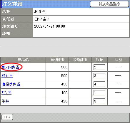 注文詳細画面の商品一覧にある”商品名”リンクを押します。