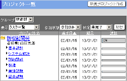 プロジェクトと、それに属するタスクを一覧に表示します。 |