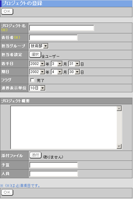※担当者が未設定の場合、全ユーザーがこのプロジェクトに参加することになります。 |