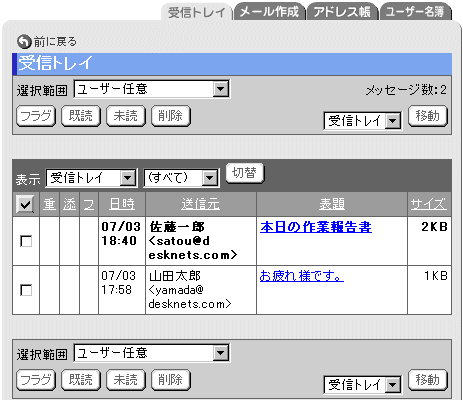 [表示]欄で選択されてる条件に該当するメールが一覧表示されます。