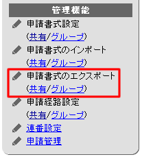 [個人設定]または、[管理機能]の[申請書式のエクスポート]リンクを押します。