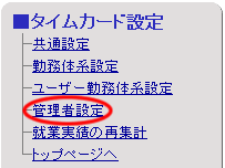 【タイムカード設定】欄の[管理者設定]リンクを押します。