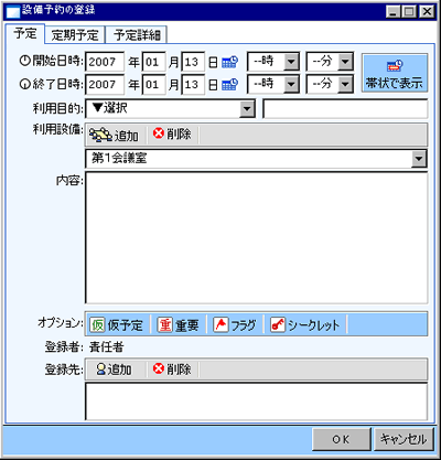 アイコンボタンをクリックすると「設備予約の登録」画面が表示されます。