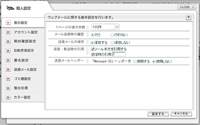 「保有期間を超えた受信メールの削除確認」項目の「行わない」を選択した場合、未読・既読にかかわらずメールを完全に削除します。